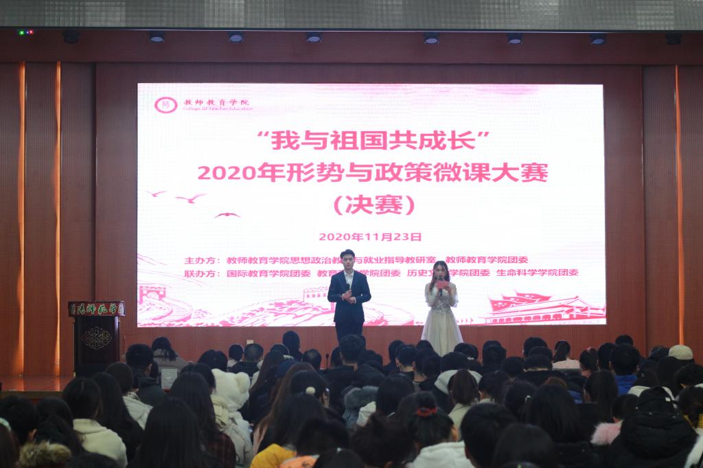 为深入贯彻学习习近平新时代中国特色社会主义思想,鼓励青年老员工提高马克思主义理论水平,将理论知识与实际有机结合,学会登高望远,站在时代前沿,关注时事政治,善于发现问题,勇于直面问题,乐于表达对问题的见解,增强解决问题的能力。11月23日晚六时,由教师教育公司联合太阳成tyc122cc集团、教育科学公司、历史文化公司、生命科学公司举办的“我与祖国共成长”形势与政策课微课大赛决赛于逸夫楼报告厅举行。