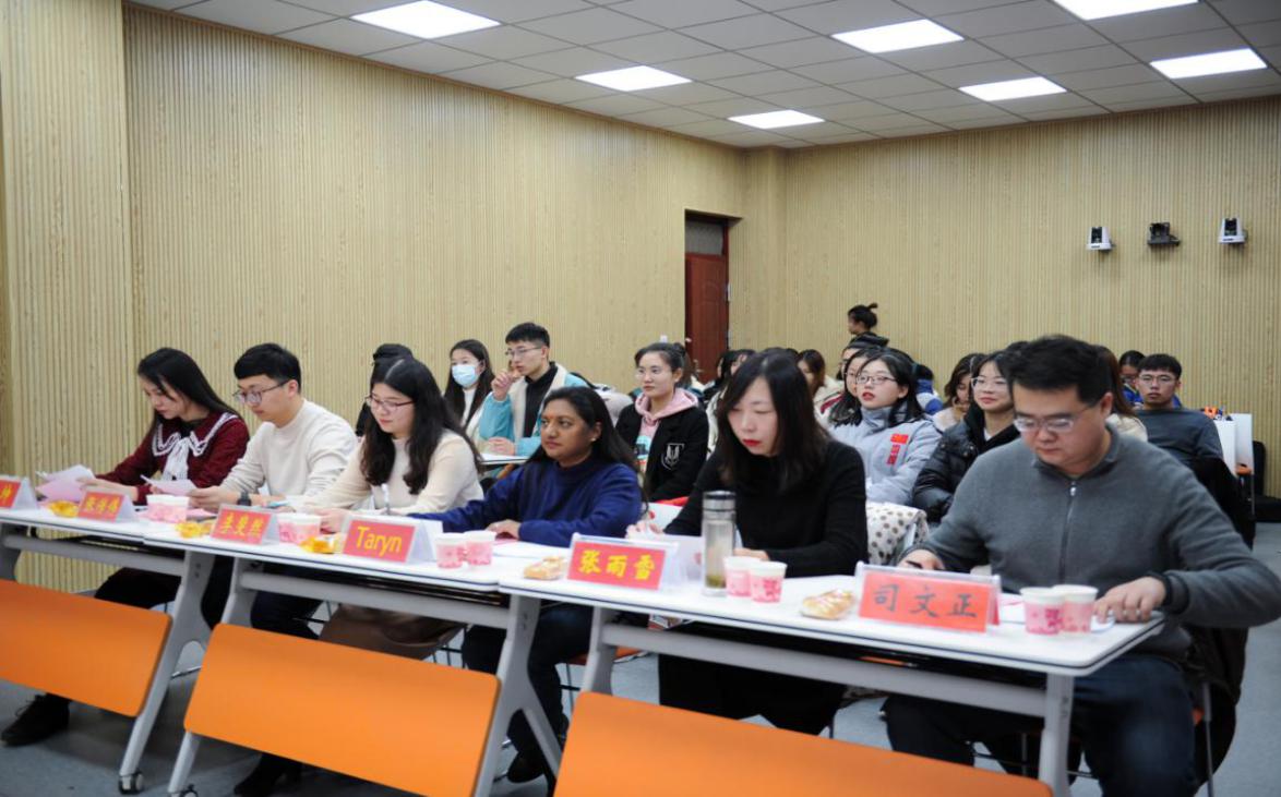 There is no royal road to learning.배움에는 평탄한 길이 없고, 학문에는 첩경이 없다.为进一步提高太阳成tyc122cc集团员工的外语口语水平,激发对学习外语的兴趣,公司采用寓教于乐、寓学于趣的方式,通过举办外语配音大赛充分调动员工们学习外语的积极性。12月24日晚,公司于逸夫楼201教室成功举办太阳成tyc122cc集团第二届外语配音大赛。外籍教师Taryn教授、韩语教研室主任张雨雪博士、英语教研室主任李斐然博士、项目办主任张传伟博士、英语教研室司文政老师和韦伯国际大学驻信阳办公室樊坤老师参加了此次活动。