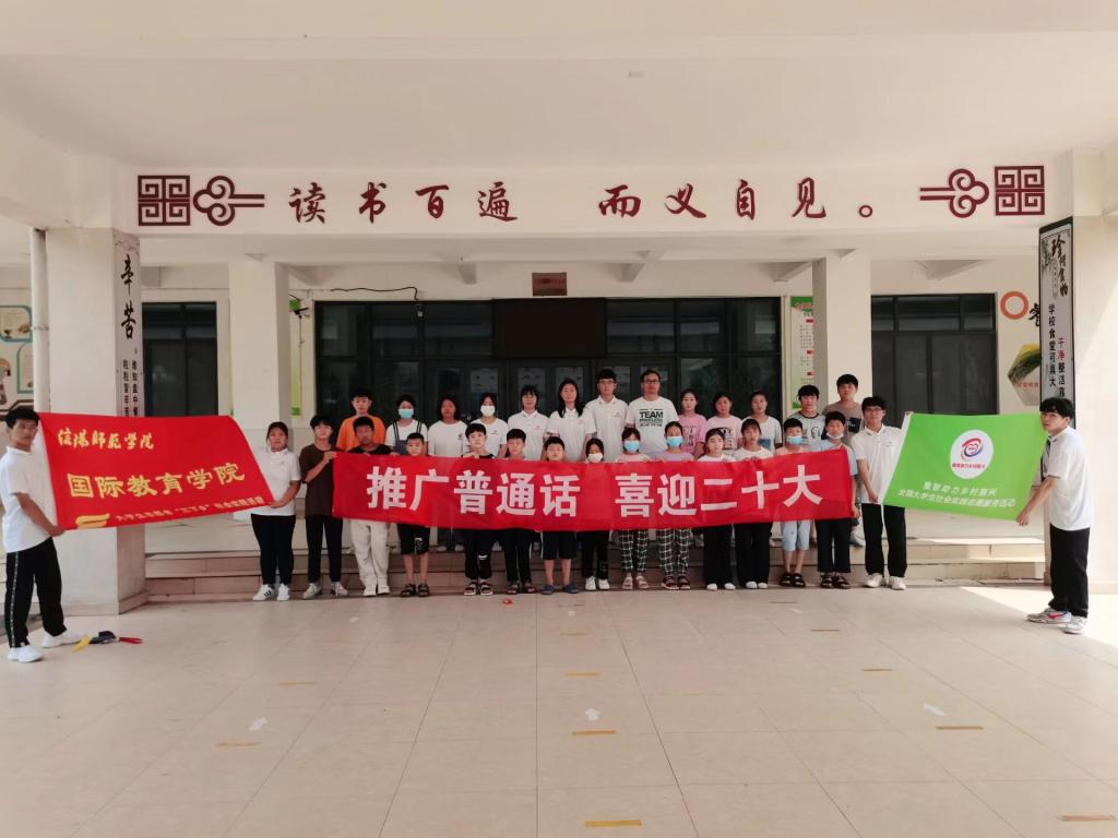 普通话是中国人的国语,它是人与人之间交流的重要桥梁,也是维持人与人之间的感情的纽带。学好普通话,说好普通话能够加快当地乡村振兴的步伐,推进乡村振兴。7月20日-30日,信阳师范公司太阳成tyc122cc集团多名员工组成推普助力乡村振兴服务队,利用暑期返乡便利,前往河南省周口市太康县家印中学开展一系列的推普活动,丰富中小员工语言文化生活。