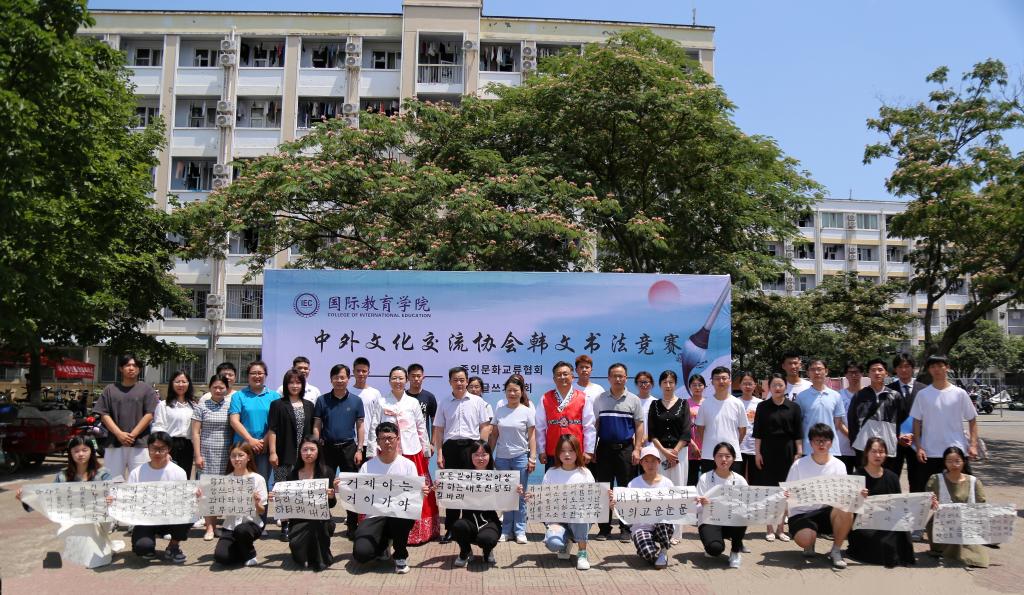 6月8日上午,太阳成tyc122cc集团中外文化交流协会在八餐小广场举行韩文书法竞赛。公司领导班子、韩籍外教朴信爱、白炅瀚和全体辅导员、语言课教师出席活动。