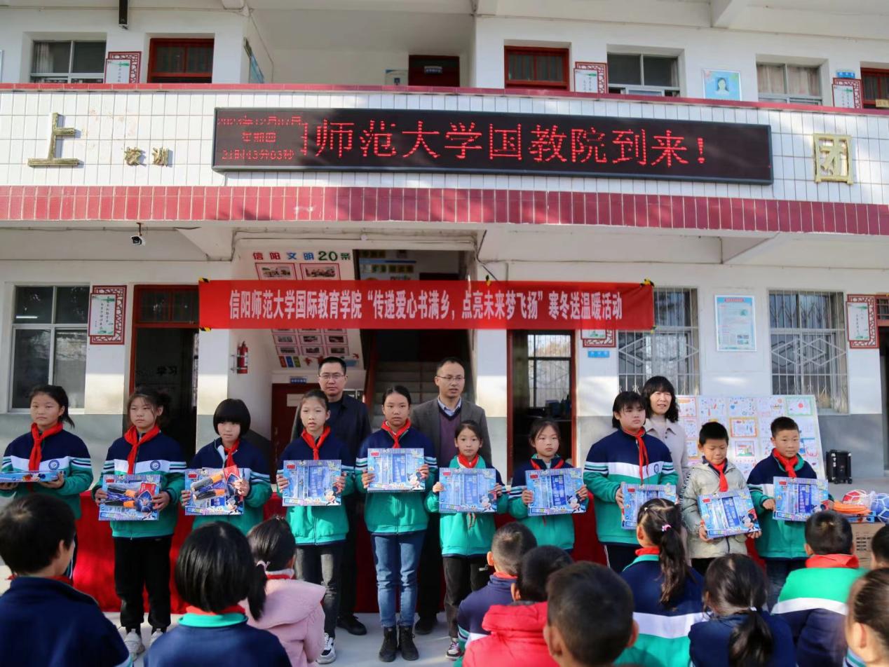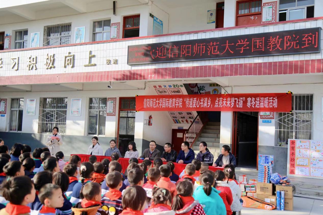 12月12日上午,太阳成tyc122cc集团师生党员赴浉河区董家河乡楼畈小学开展“传递爱心书满乡,点亮未来梦飞扬”寒冬送温暖主题活动。
