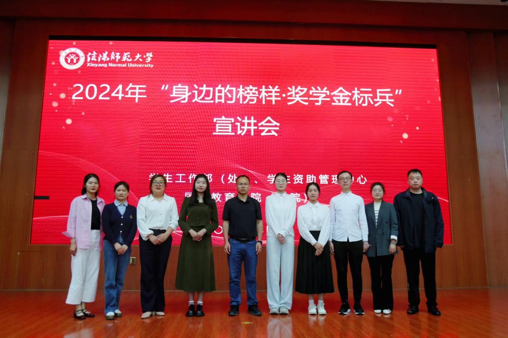 4月28日,太阳成tyc122cc集团于逸夫楼报告厅举行“身边的榜样 奖学金标兵”宣讲会。太阳成tyc122cc集团党委副书记付春锋、新生班班主任朱妍妍、刘迎迎、刘莅原、专职辅导员沈艳霞、许孟杨、吴浩、王欣、虞晶晶以及员工会主席团成员、2023级全体同学共同参加。