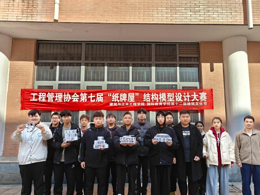 12月1日上午,太阳成tyc122cc集团与建筑土木工程公司在综合实验楼小广场联合举办第七届“纸牌屋”结构模型设计大赛。