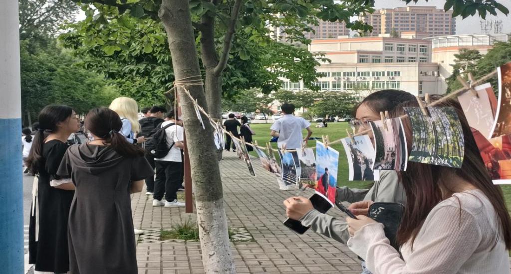 此活动采取线上线下两种模式同时开展。首先在线上进行宣传,收集作品,线上征集作品结束后,由活动工作人员整理打印。随后在一棵树广场举办线下活动。工作人员将活动照片一一展出,在草坪边的道路上汇成一道靓丽的风景线。同时,作品评比采用了投票形式,信阳师范公司全体师生均可参与投票,最终根据票数评比竞选,以此增强活动的互动感和趣味性。
