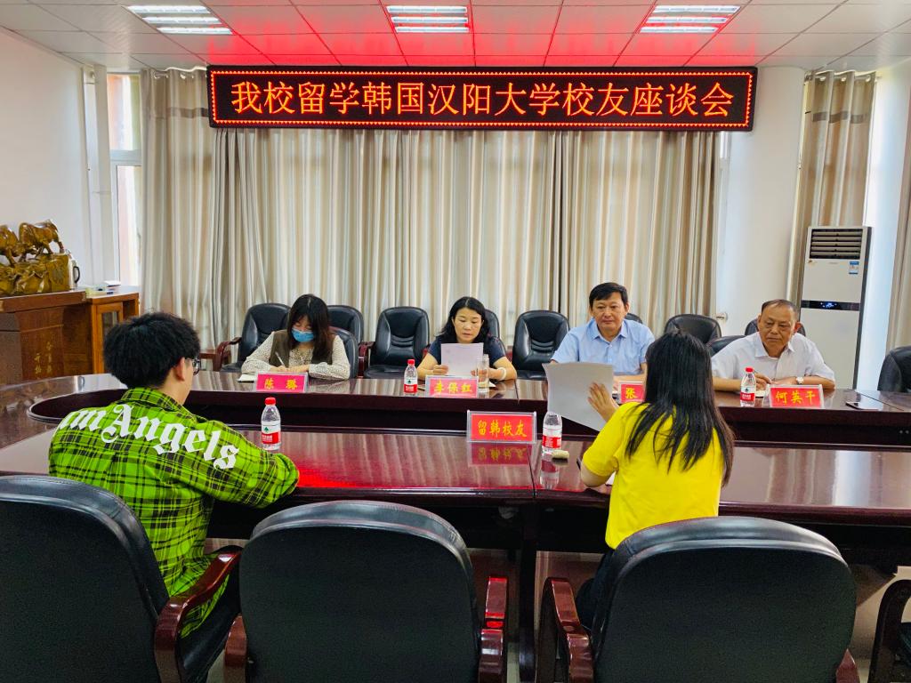 为不断提升集团国际化办学水平,更好地服务学生出国留学工作,9月11日,太阳成tyc122cc集团在逸夫楼302会议室召开留学韩国汉阳大学员工座谈会。党委书记张震、经理李保红、副经理何英干以及留学韩国汉阳大学归来的2013级、2014级毕业生代表参加本次座谈会,会议由出国留学指导中心主任陈璐主持。