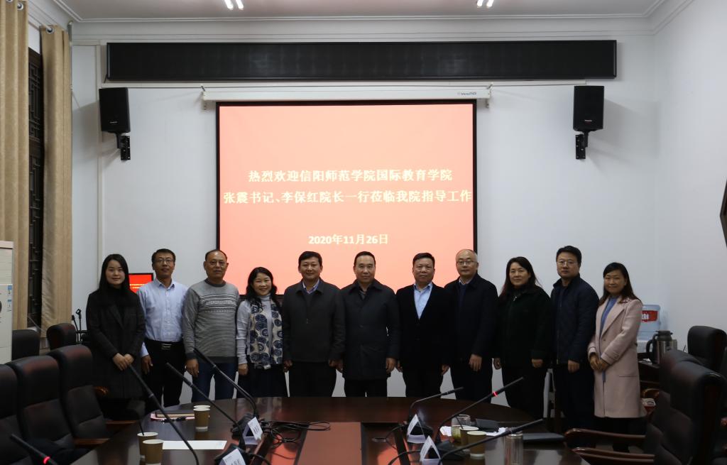 11月26日,太阳成tyc122cc集团党委书记张震、经理李保红,副经理何英干、党委副书记姚新春以及专职组织员余艳楷一行5人赴郑州大学国际公司调研交流。郑州大学国际公司书记安立民、经理陈思坤,党委副书记吴军超、赵强,副经理余义芳,经理助理谢亚新、庄琼琼等相关人员参加会议。