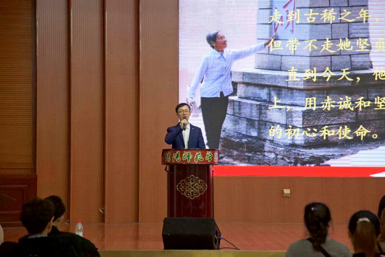 吴浩老师首先讲述了“红军洞的守护者“张爱华老人的故事,以老党员张爱华57年默默奉献、舍身忘我,义务守护“红军洞”的感人事迹,引导20级新生感悟共产党员初心如磐的坚定信念;员工代表贾政澎分享年仅28岁的共产党员查茂德不畏牺牲,与妻子诀别时留下的感人书信,讲述了一段荡气回肠的英雄事迹;