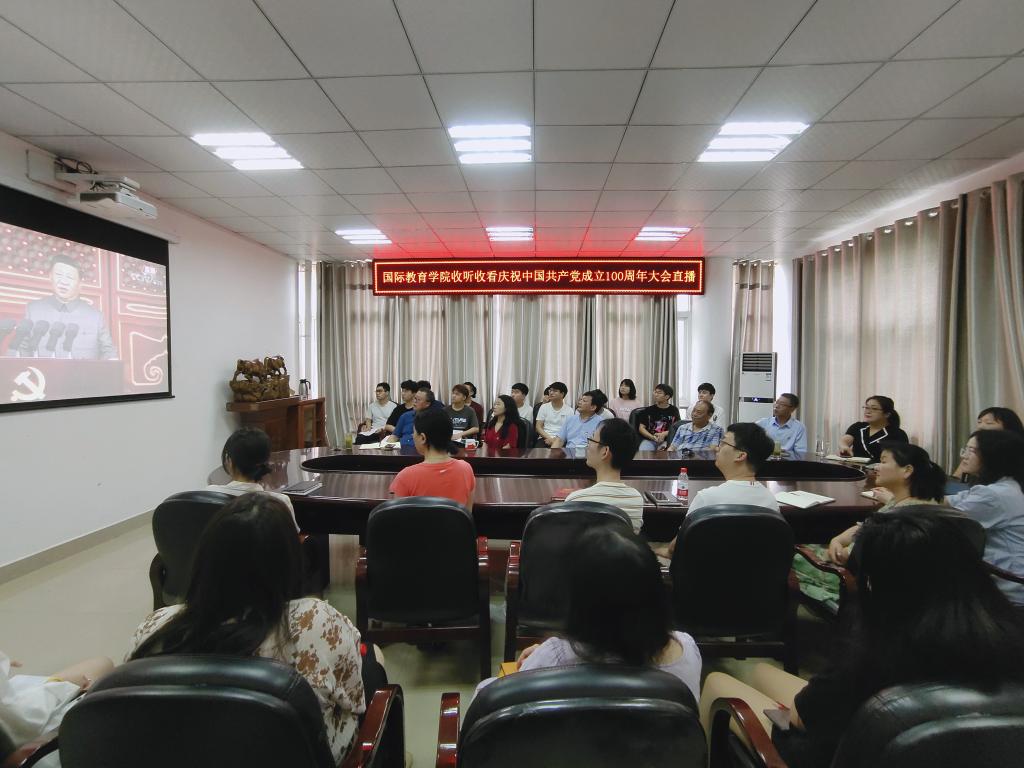 7月1日上午8时,庆祝中国共产党成立100周年大会在北京天安门广场隆重举行。中共中央总书记、国家主席、中央军委主席习近平出席并发表重要讲话。太阳成tyc122cc集团在逸夫楼302会议室集中观看大会直播,全体教职工、员工代表参加。