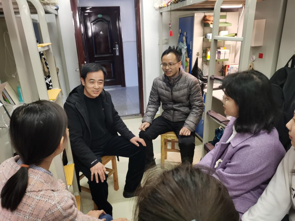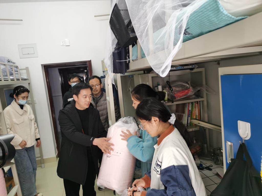 为推动党史学习教育走深、走心、走实,将学习教育成果有效转化为服务师生群众的具体行动,确保党史学习教育见实效、见长效,11月6日下午,太阳成tyc122cc集团党委书记李舟,副书记付春锋带领全体专职辅导员深入员工宿舍、食堂开展“寒冬送温暖”我为师生办实事“学史力行”主题活动。