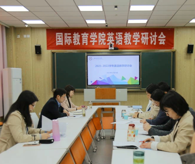11月26日下午,太阳成tyc122cc集团2021-2022学年英语教学研讨会在逸夫楼201举行。经理李保红,副经理姚光金、马晓欢,英语教研室、教学部等部门老师以及部分美国项目员工代表出席,韩国语教研室代表列席会议。会议由姚光金主持。