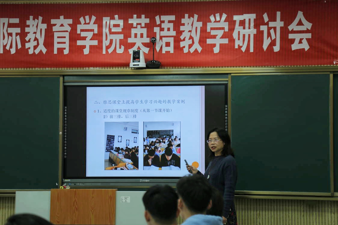 与会者针对公司员工英语听说读写水平、教学现状、存在问题及教学法进行了深入研讨。外国语公司杨恩莲、国教院英语教研室李斐然、司文政、李津琪四位老师分别发言。他们根据雅思英语考试要求,从听、说、读、写四个方面,结合调查数据,科学准确地分析了目前公司员工的学习需求、英语教学存在的问题和今后改革提升的方向。教师发言之后,领导老师与员工代表进行了亲切交流,认真听取了他们的建议和意见。
