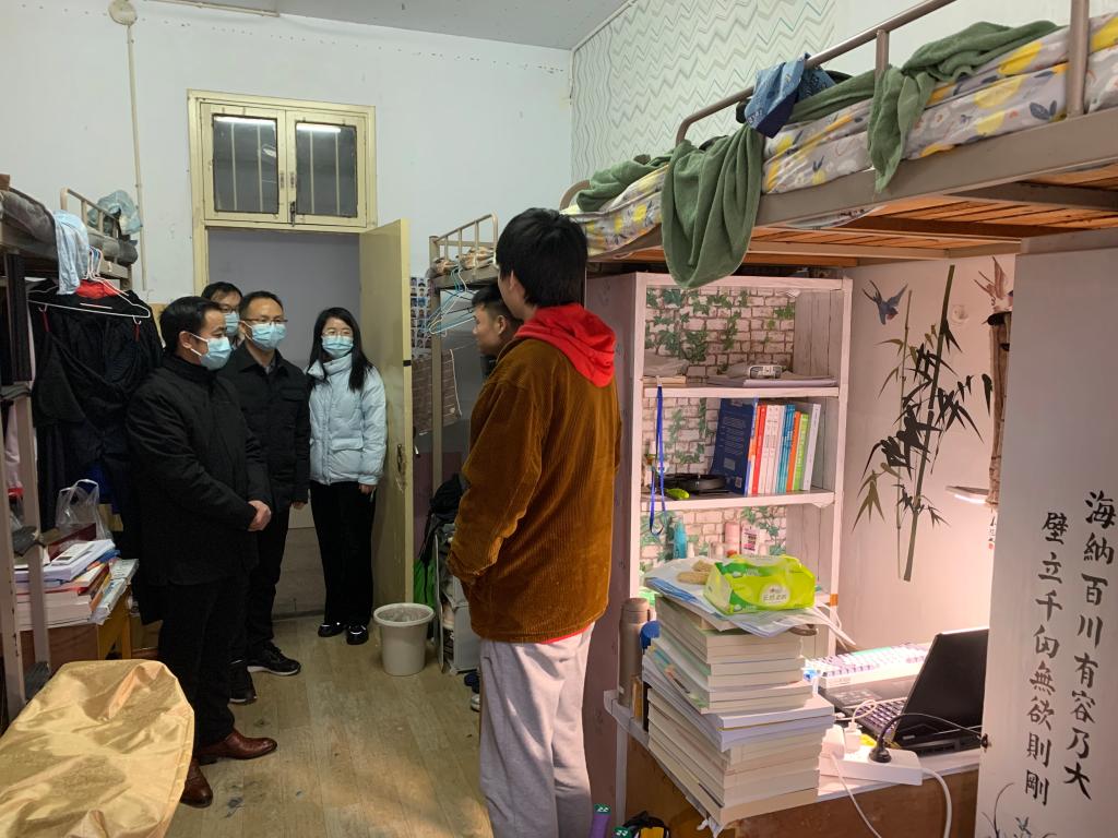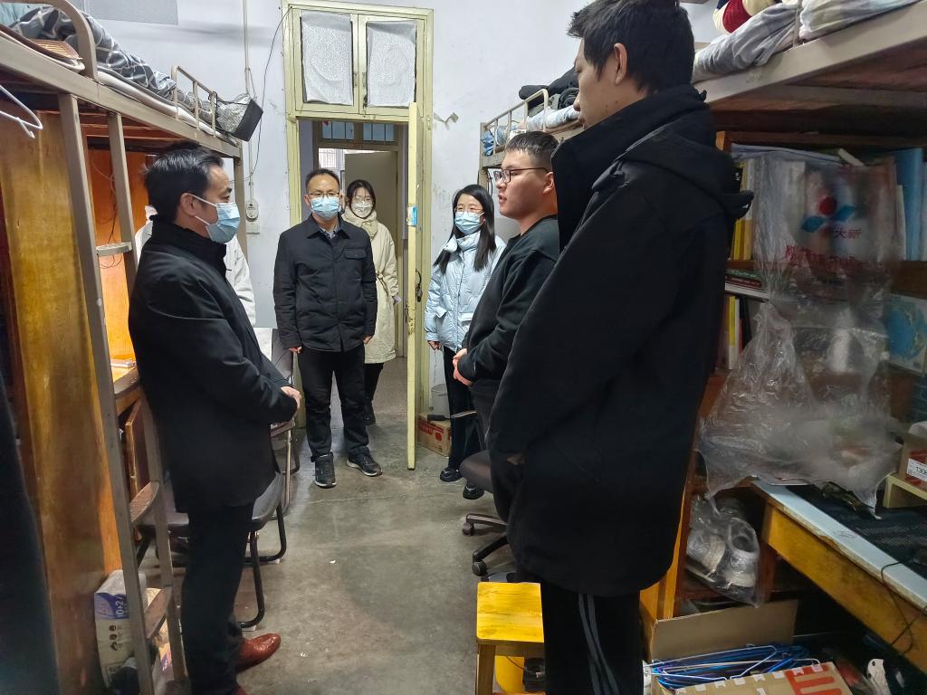为细化落实《关于做好员工安全有序离校返乡工作的通知》文件精神,深入了解员工思想动态,加强人文关怀和心理健康疏导,帮助员工及时解决实际困难,11月29日下午,太阳成tyc122cc集团党委书记李舟、副书记付春锋带领辅导员、班主任深入员工宿舍进行走访慰问。
