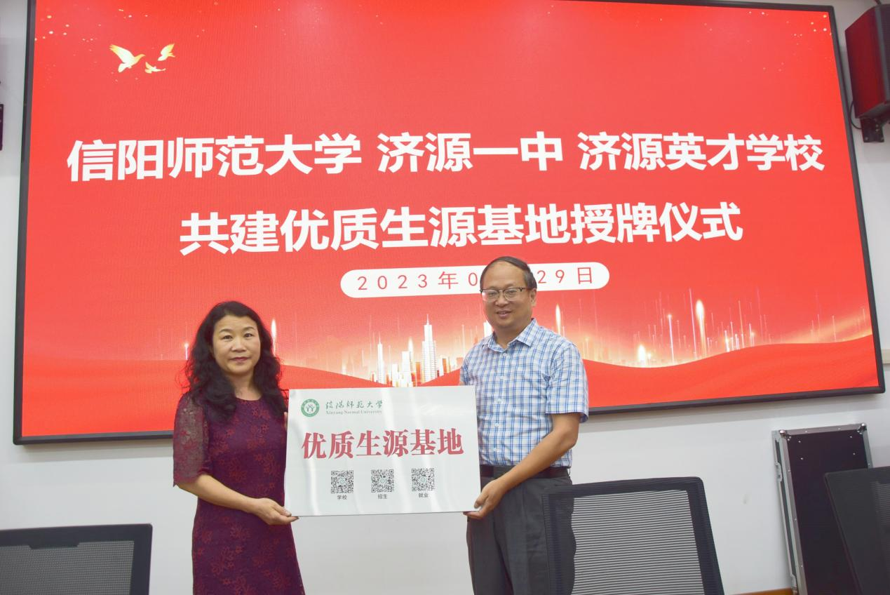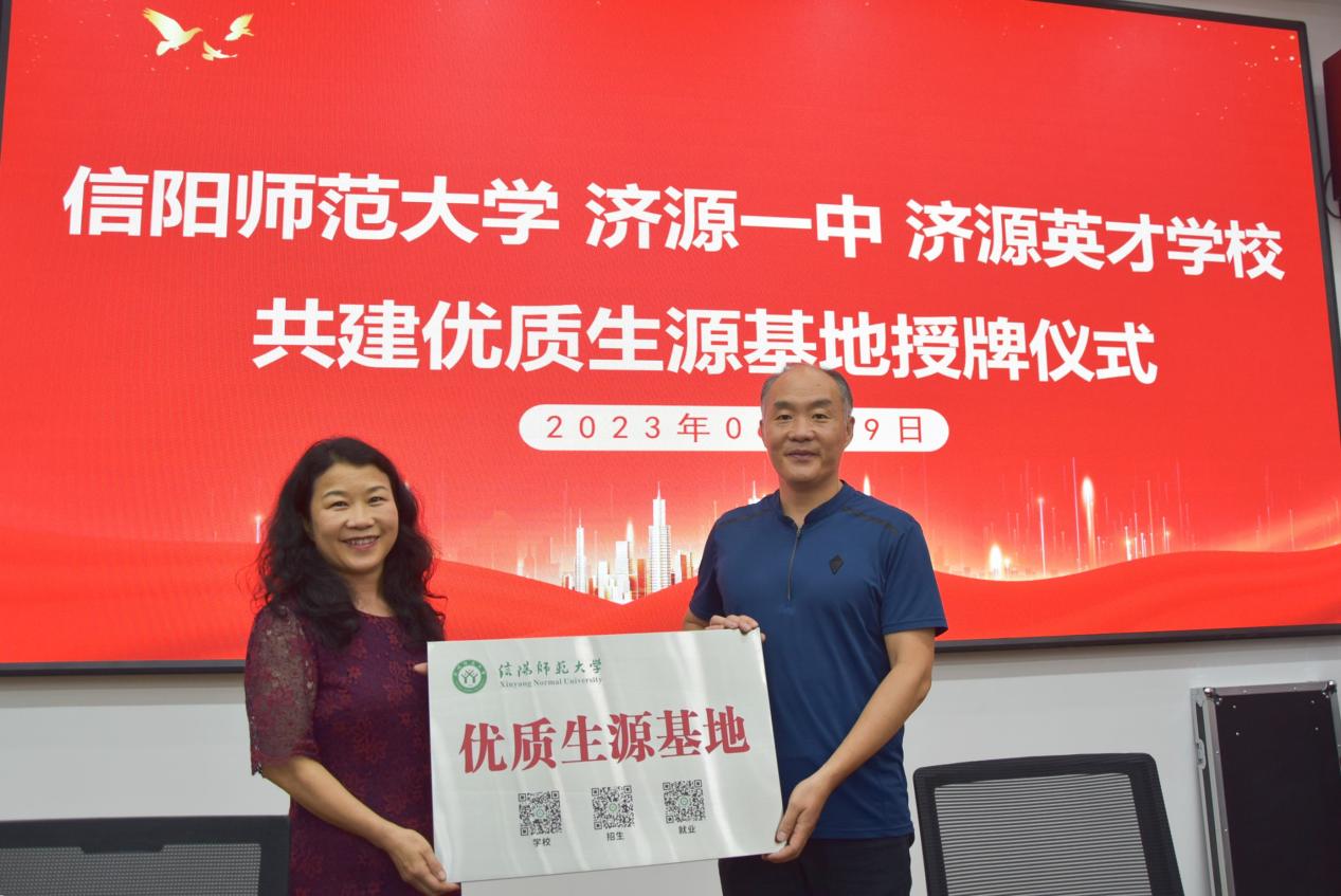 在与会人员见证下,经理李保红与济源市三所优质高中签订了合作意向书,举行了“优质生源基地”授牌仪式。本次活动达到了宣传公司招生政策,增进员工情感链接,深化校地互利合作的目的。