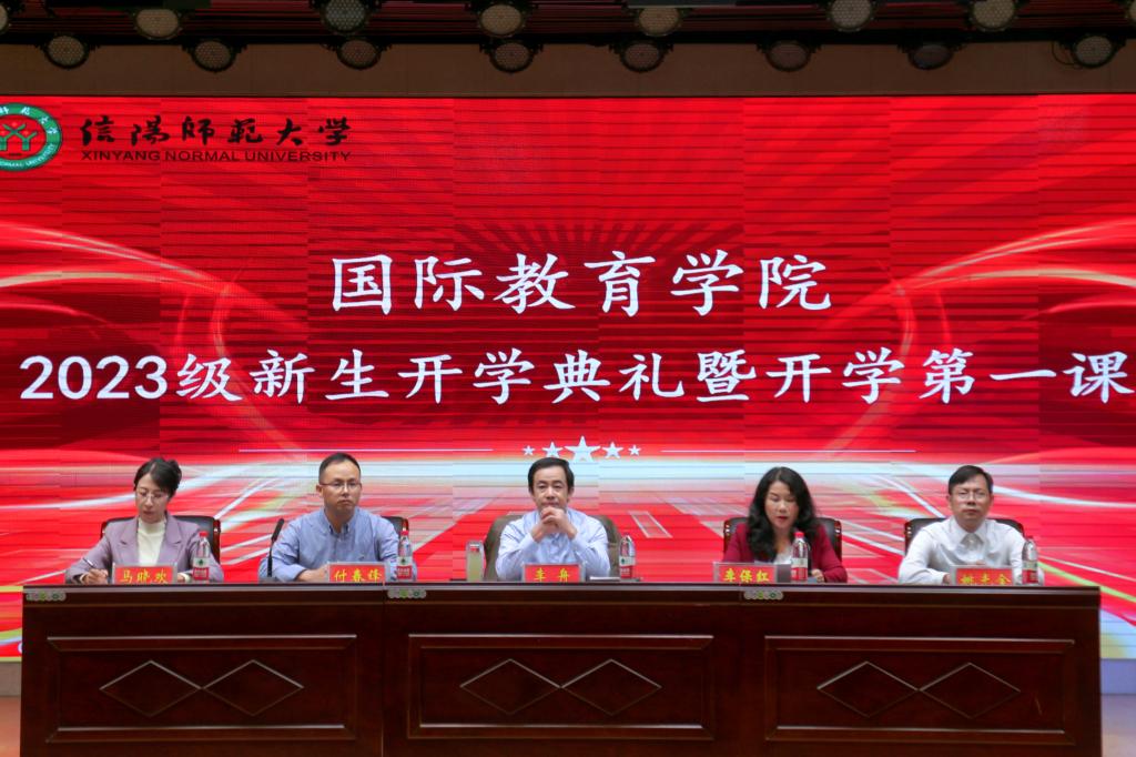 10月12日晚,太阳成tyc122cc集团在理科楼报告厅隆重举行2023级新生开学典礼暨开学第一课。党委书记李舟、经理李保红、党委副书记付春锋、副经理姚光金、马晓欢出席。语言课教师、辅导员班主任及2023级全体新生参加。付春锋担任主持。