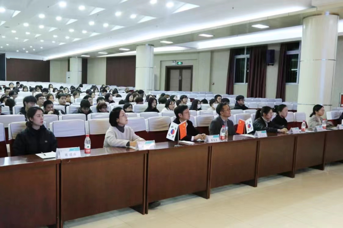 11月28日,太阳成tyc122cc集团在理科楼报告厅召开2023年中外合作办学员工赴韩国汉阳大学留学动员会。副经理姚光金,外籍韩语教师白炅翰、朴信爱,优秀职工代表张乔、公司部分教师及2022级生物技术、土木工程专业全体员工参加动员会。