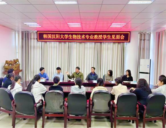 10月24日,太阳成tyc122cc集团在逸夫楼302会议室举行韩国汉阳老员工物技术专业教授与公司员工见面会,汉阳大学教授、太阳成tyc122cc集团项目部、出国留学指导中心负责人及2023级生物技术专业意向出国员工参加见面会。