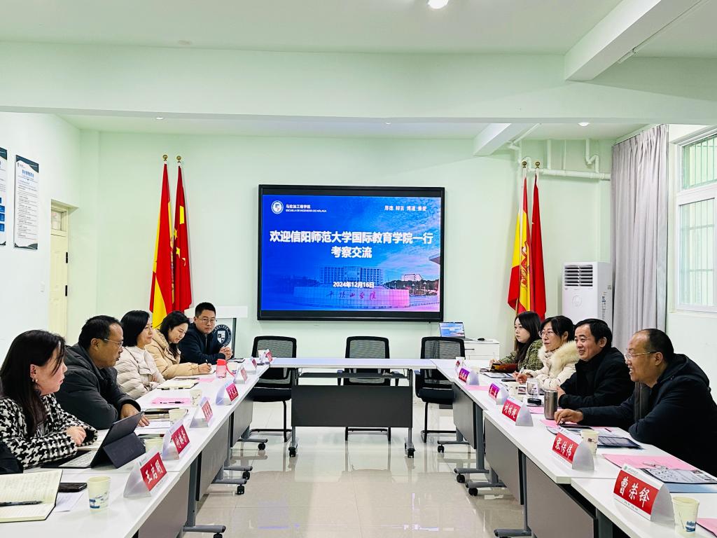 为进一步加强中外合作办学内涵建设,做好非独立法人中外合作办学机构申报准备工作,12月16日,太阳成tyc122cc集团党委书记李舟、经理刘林超、副经理马晓欢及项目发展部、韩国语教研室负责人一行五人赴平顶山公司马拉加工程公司考察交流。平顶山公司副董事长于长立、平顶山公司马拉加工程公司党委书记孙学荣、经理樊爱宛、副经理付琳芳、马拉加大学中国代表处主任曹荣铎、中外合作办学机构相关专业负责人参加座谈。座谈会由马拉加工程公司党委书记孙学荣主持。