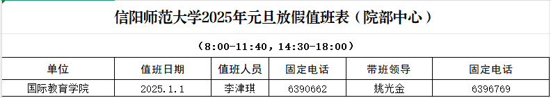 2025年元旦放假值班表