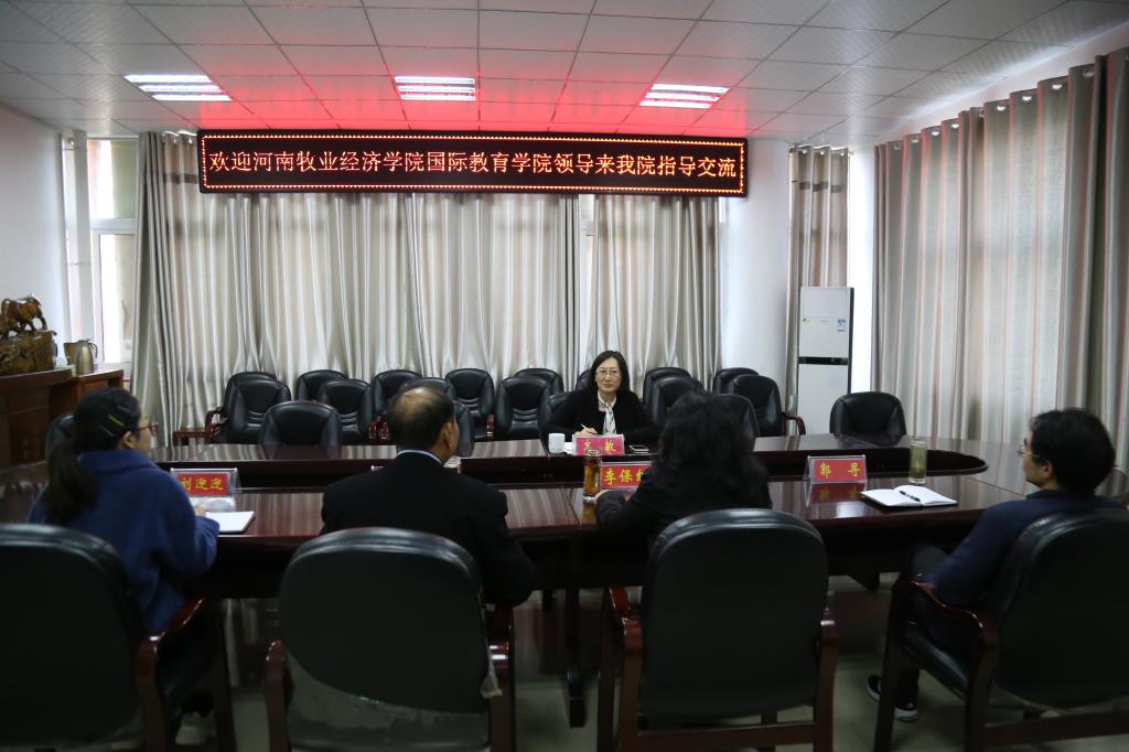 11月7日,河南牧业经济公司太阳成tyc122cc集团经理高敏来公司交流考察中外合作办学工作。太阳成tyc122cc集团经理李保红、副经理何英干及教学部、办公室负责人参加交流座谈会。会议由李保红主持。