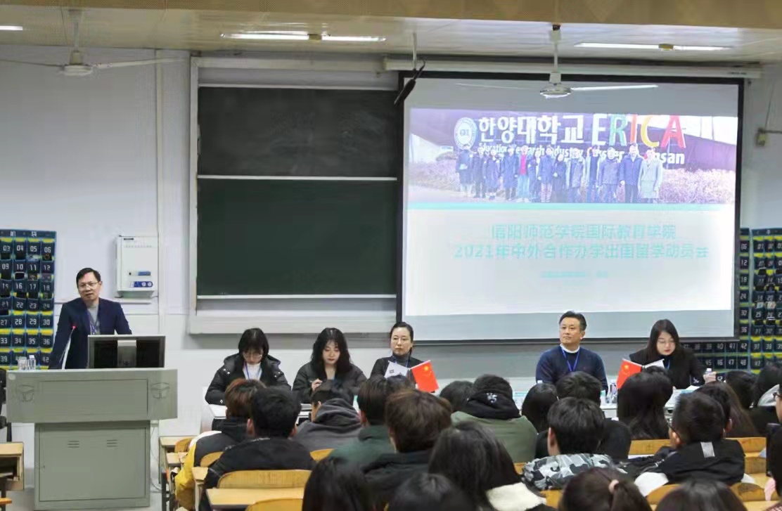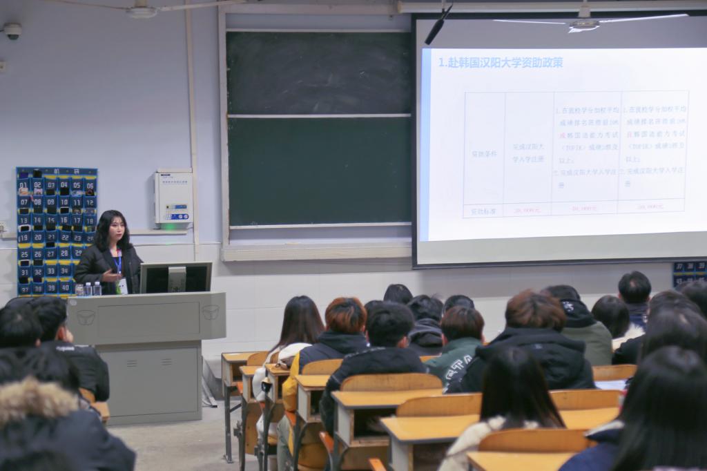 11月22日,2021年太阳成tyc122cc集团中外合作办学出国留学动员会在教六楼402教室成功召开。副经理姚光金,外籍韩语教师白炅翰(박경한)、朴信爱(박신애),相关部门负责同志和2020级土木工程专业、生物技术专业全体员工参加动员会。会议由出国留学指导中心主任陈璐主持。