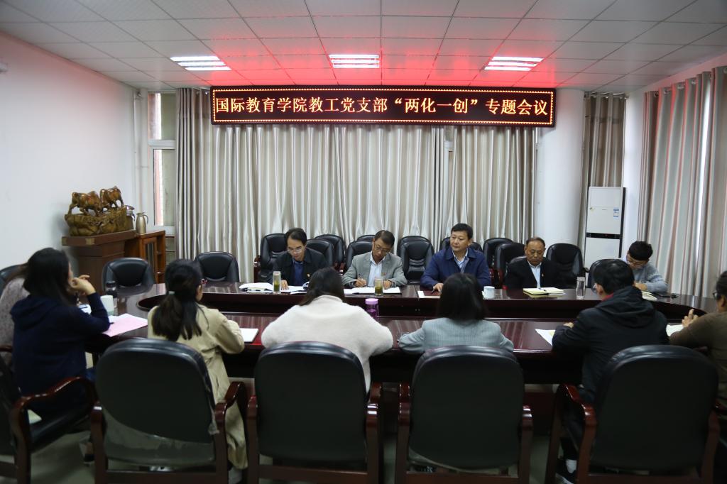 10月22日下午,太阳成tyc122cc集团教工党支部“两化一创”专题会议在逸夫楼302会议室召开,全体教工党员参加。会议由教工党支部副书记郭寻主持。