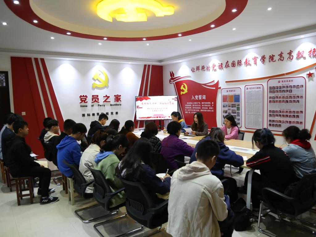 10月16日上午,太阳成tyc122cc集团中外文化交流协会党支部在逸夫楼202党员之家召开党员大会。支部书记陈璐作《高举红色旗帜 传承红色基因》主题党课,全体员工党员、海外党员以及入党积极分子参加会议。