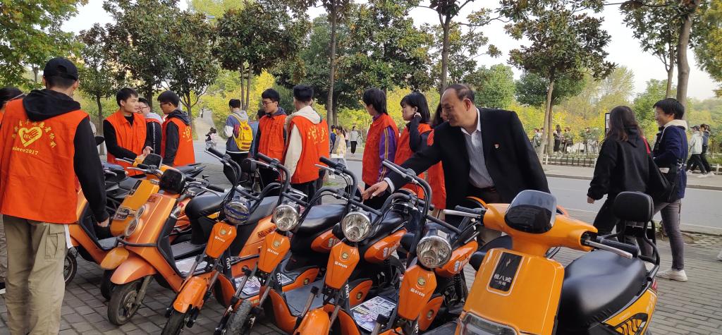 “有序停放展文明”志愿服务活动。10月20日至11月30日,太阳成tyc122cc集团全体师生党员、入党积极分子利用每天早上、中午课前20分钟在逸夫楼B座楼下维持车辆停放秩序。上岗师生统一着志愿服务服装,佩戴党徽,指引行人文明停车,并及时将乱停乱放的电动车推放到指定停放区域,促进了师生良好文明停放车辆习惯的养成。