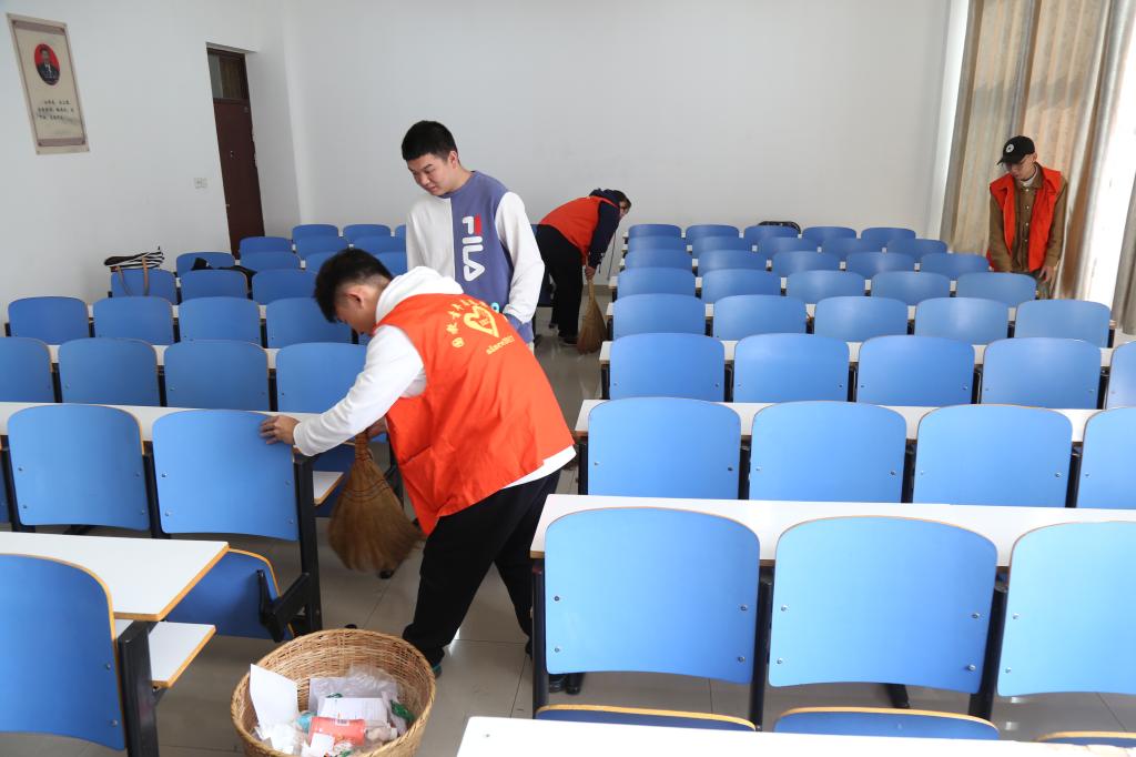 文明清洁教室志愿服务活动。员工党员、入党积极分子利用每周二晚集中打扫逸夫楼教室卫生,对每个教室的手机袋进行检查,及时将破损的手机袋进行更换,开展教室桌椅维修活动,为椅子的轴承打上黄油避免上课发出响声,为员工上课提供一个干净整洁的环境;各班自发在教室里制作黑板报,积极宣传党的方针政策,积极营造良好的学习氛围。