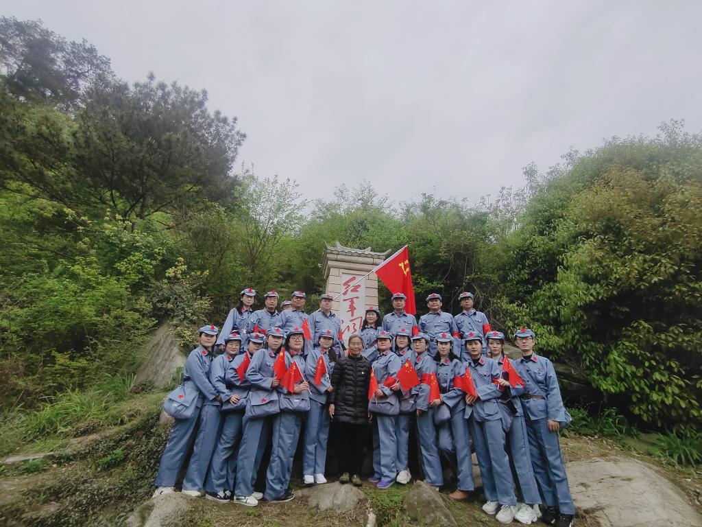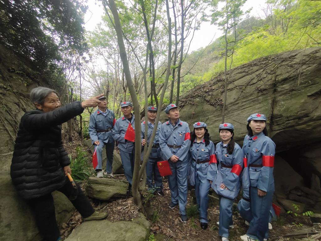“青枝绿叶一片山,无数石洞在里面。”全体党员沿鸡公寨曲折陡峭的山路拾阶而上,重走红军路,寻访烈女崖、红军洞等红色革命遗迹,深入了解为掩护游击队跳崖牺牲的女烈士晏春山、坚持大别山革命斗争28年红旗不倒的老英雄刘名榜等传奇事迹,感悟老一辈革命者初心如磐的坚定信念和不畏牺牲、敢为人先的斗争精神;新时代农民讲习所里,老党员张爱华以57年默默奉献、舍身忘我,义务守护“红军洞”的感人事迹,为党员干部上了一堂别开生面的主题党课。随后,全体党员面向党旗庄严肃立,重温入党誓词。