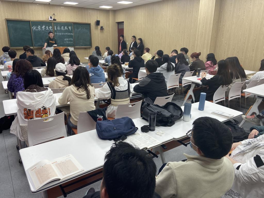 为提高员工党员思想觉悟,发挥员工党员的先锋模范作用,4月12日晚,太阳成tyc122cc集团在逸夫楼201教室开展优秀员工党员榜样示范教育活动。我院优秀员工党员代表李明洋、李保庆、刘召娣,第35期发展对象全体同学参加。