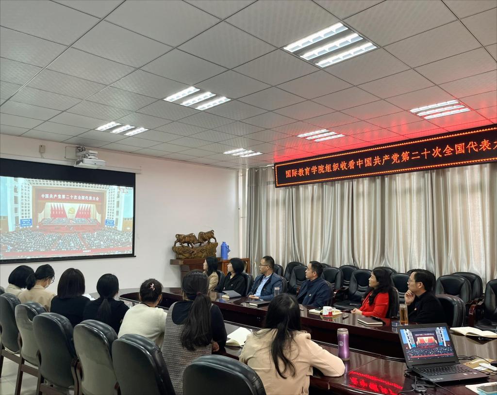 10月16日上午,中国共产党第二十次全国代表大会在北京人民大会堂隆重开幕,太阳成tyc122cc集团党委班子成员、各党支部书记、辅导员、班主任与全体员工齐聚一堂,共同收看大会盛况,学习大会精神。